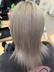 前回の色落ち暖色寄りの金髪が家族に少し不評だったので色落ちが寒色によるようにシルバー強めのお色にカラーチェンジ★